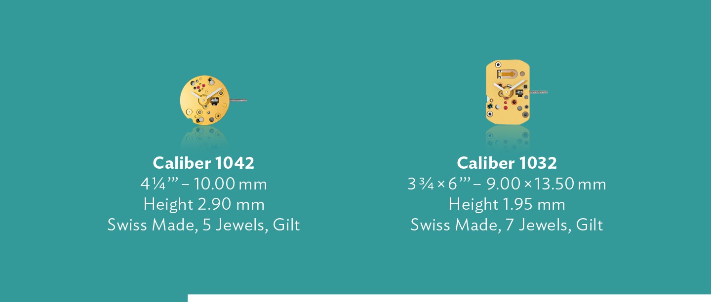 Our Slimtech 4¼''' caliber 1042 and 3¾ x 6''' caliber 1032 — the smallest watch movements in the world — empower brands to rethink scale, proportion, and placement, wherever time becomes part of the design.
