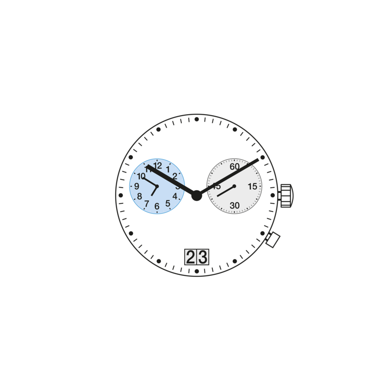 | Typ | Analog-Quarzuhrwerk |